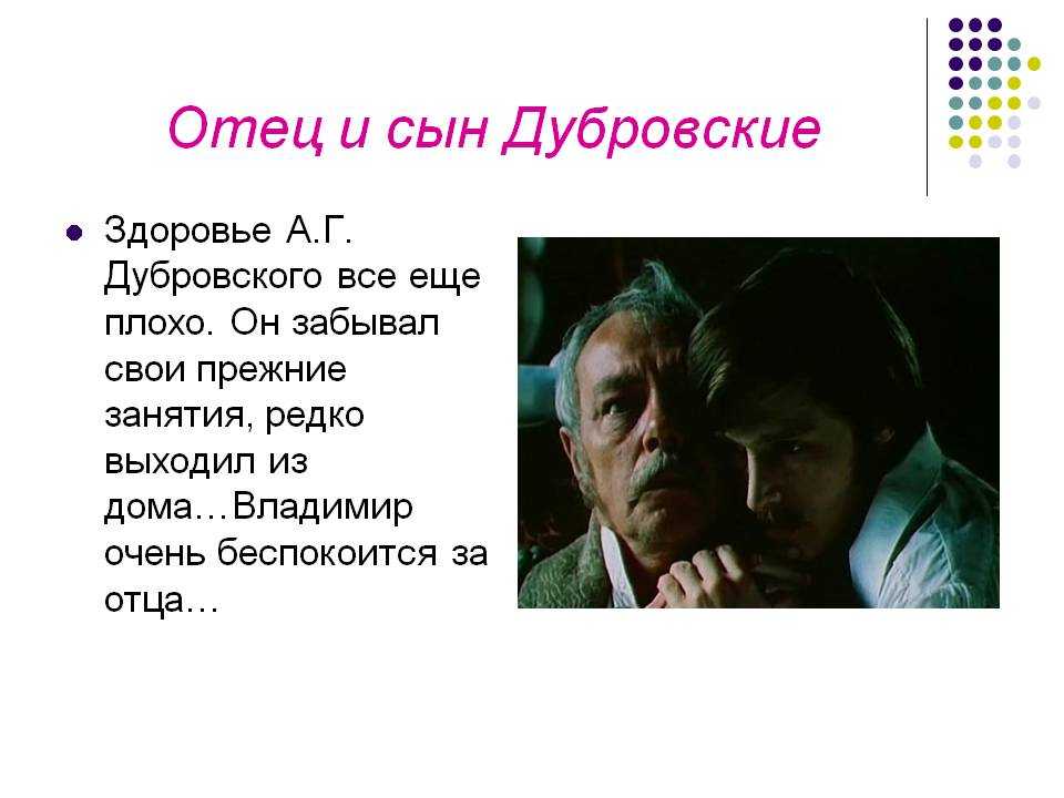 Их отцы смолоду были дружны, поместья их находились по соседству. Троекуров даже прочил молодого Дубровского в женихи своей дочери. Но ссора сделала врагами Троекурова и Дубровского.