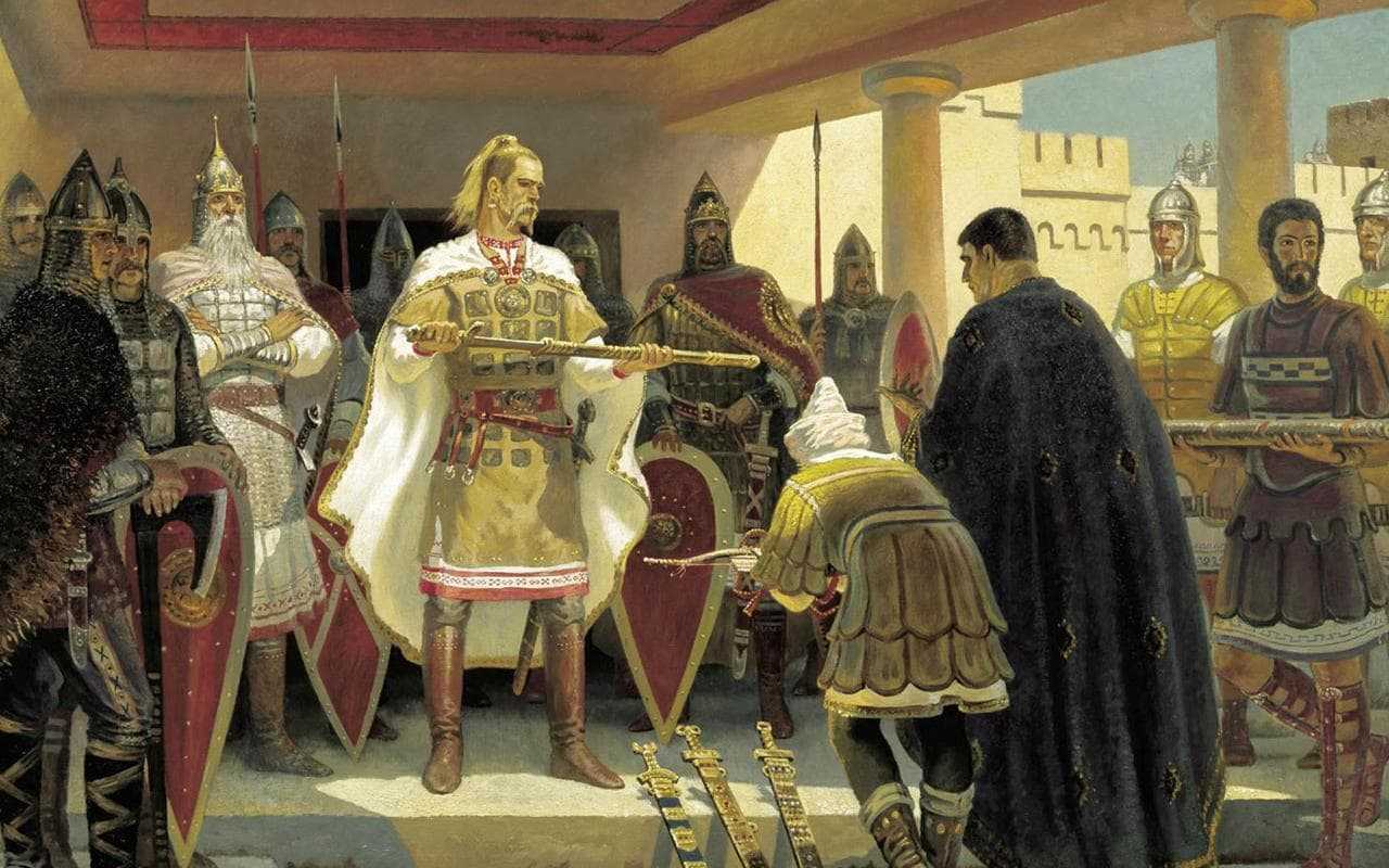 Всеволод Суздальский может Волгу веслами расплескать, а Дон шлемами вылить, и автор «Слова» скорбит о том, что этого князя нет сейчас на юге. Ярослав Осмомысл подпер горы венгерские своими железными полками, загородил дорогу венгерскому королю, отворял Киеву ворота, стрелял в Салтанов за землями.