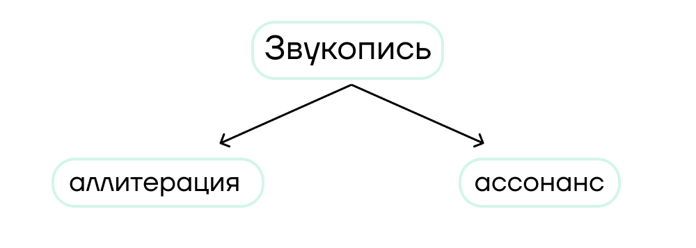 - Звукопись делится на ассонанс (повторение гласных звуков) и аллитерацию (повторение согласных звуков).