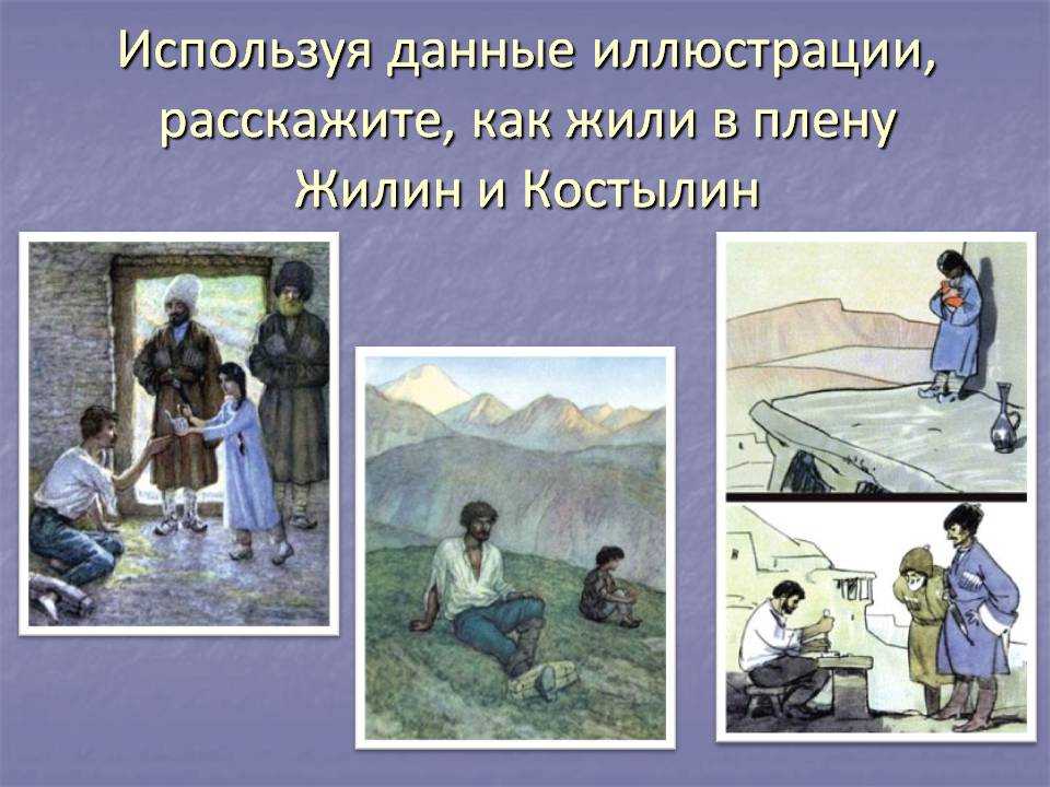 Используя данные иллюстрации, расскажите, как жили в плену Жилин и Костылин.