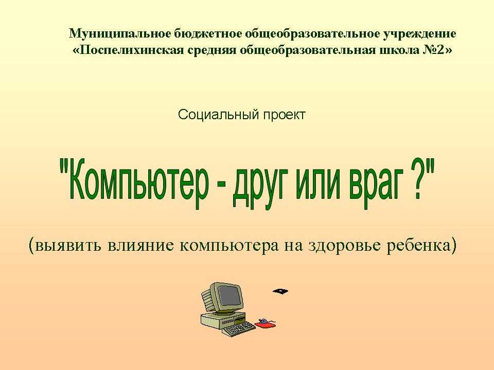 Однако я часто слышу от мамы: Не сиди долго за компьютером!» И я стала размышлять: компьютер — друг или враг здоровью человека?»