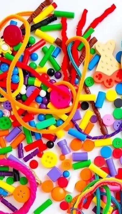 - Нанизывание бусин или макарон: развитие точности и координации.